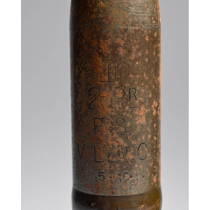 Three inert shells: a British naval 2 pounder high explosive round