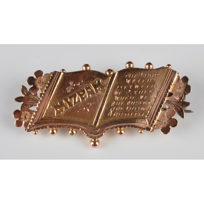 A small collection of Mizpah brooches, and other sweetheart jewellery, including: a silver brooch in the form of a sword, 'TRANSVAAL WAR 1900' in blue enamel to the blade, set with a red, a white and a blue stone, Able and Charnell, Birmingham 1900; a Mizpah brooch in the form of an open book, stamped '9CT GOLD'; a silver and enamelled Queen's Institute of District Nursing 21 years service badge to Isabel Hopper, Birmingham 1963; and other items. [qty]