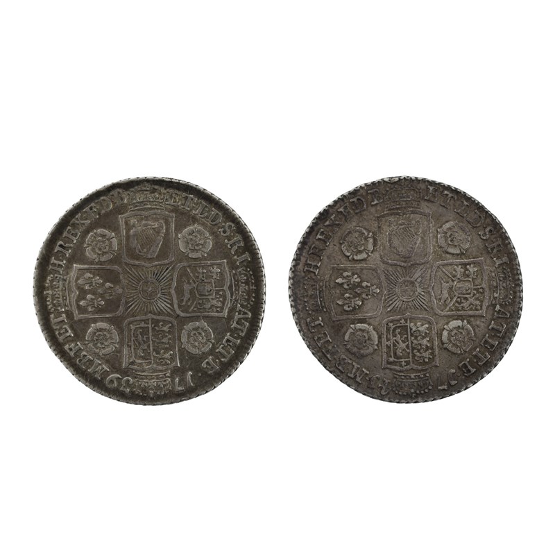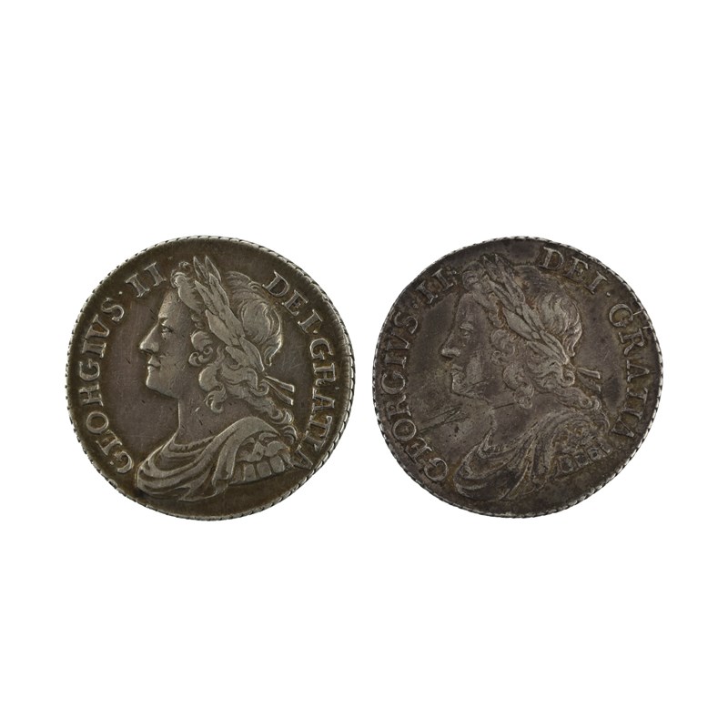 George II, silver shillings (2), 1739 and 1741, young bust, rev. roses in angles (S 3701), near very fine and good very fine or better. [2]
