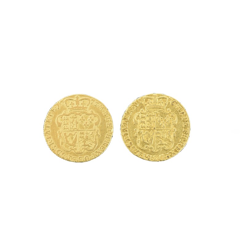 George III, gold guineas (2), 1775 and 1776, fourth head (S 3728), fine and near very fine. [2]