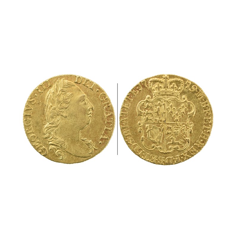 George III, gold guinea, 1779, fourth head (S 3728), nearly extremely fine.