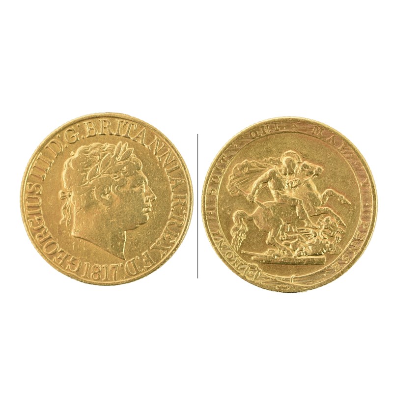 George III, gold sovereign, 1817, new coinage, legend type A, normal die axis (S 3785), about fine.