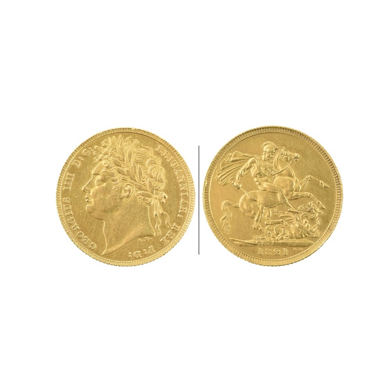 George III, gold sovereign, 1821, laureate head, rev. St George (S 3800), at least good very fine.