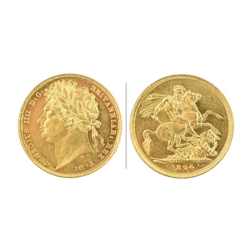 George III, gold sovereign, 1824, laureate head, rev. St George (S 3800), some surface marks but nearly extremely fine.