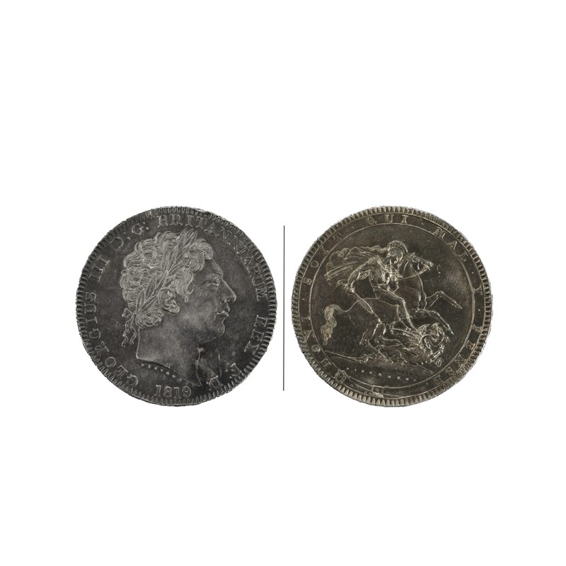 George III, silver crown, 1819, new coinage, edge LIX, no stops on edge (S 3787), some minor scratching, otherwise extremely fine and toned.