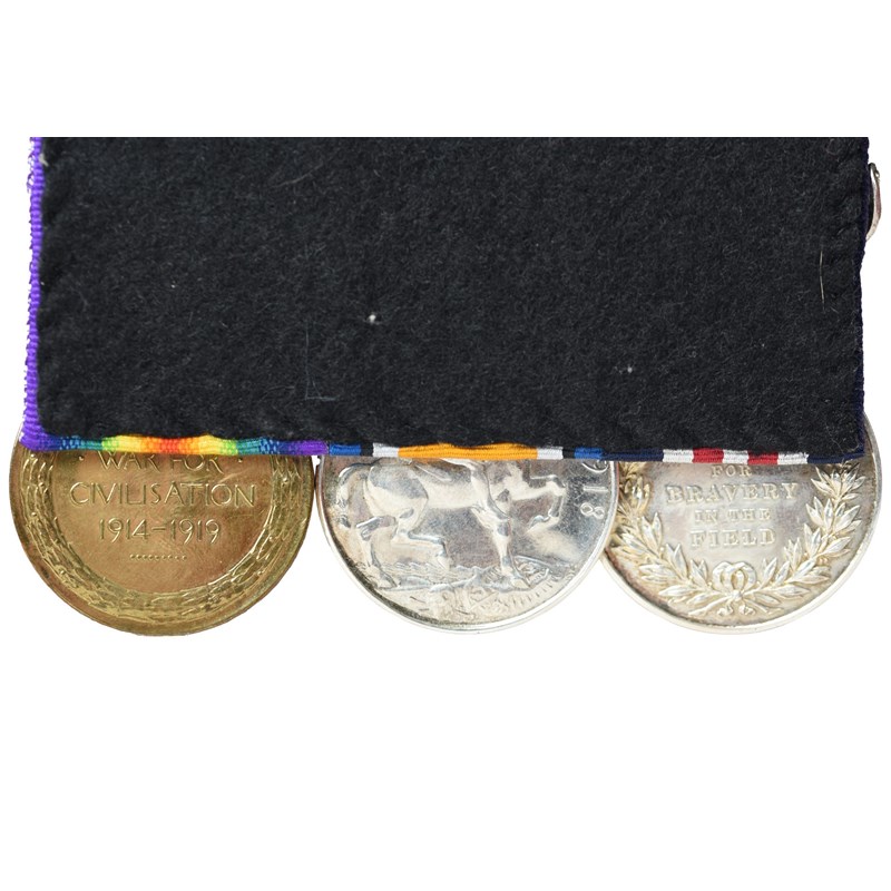 A Great War M.M. group to Second Corporal James Edward Mobbs, M.M., 1st Tunnelling Company, Australian Imperial Force: Military Medal, George V (3644 SPR: J. E. MOBBS. AUST: E.); British War Medal 1914-20 and Victory Medal (3644 2-CPL J. E. MOBBS. 1 TUN. COY A.I.F.); display mounted, extremely fine or nearly so [3]; offered with an AUSTRALIA brass shoulder title.