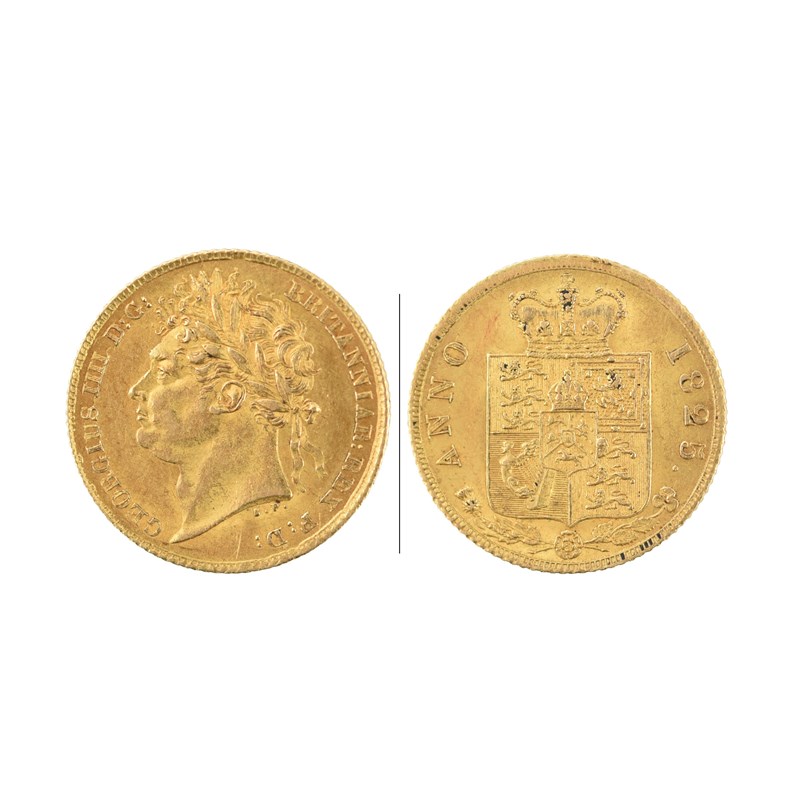 George IV, gold half sovereign, 1825, laureate head, rev. plain shield (S 3803), nearly extremely fine.