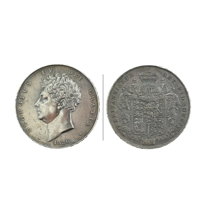 George IV, silver proof crown, 1826, bare head, rev. shield, edge SEPTIMO (S 3806), light wear to