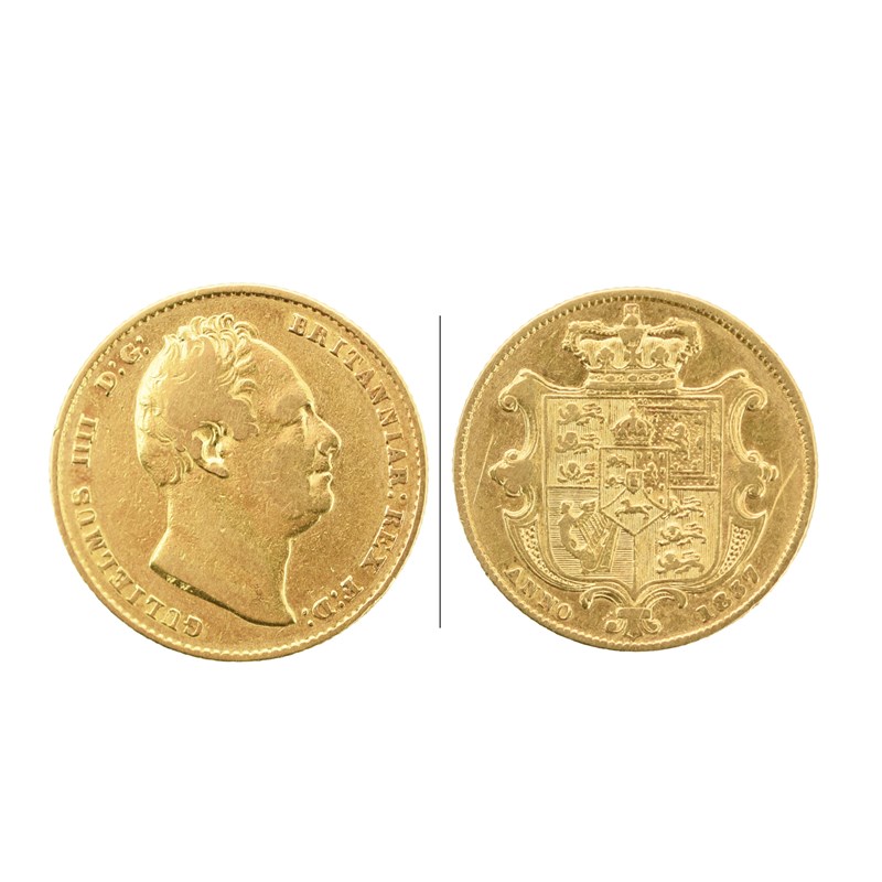 William IV, gold sovereign, 1837, second head (S 3829B), about fine.