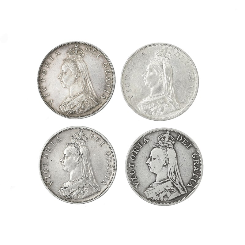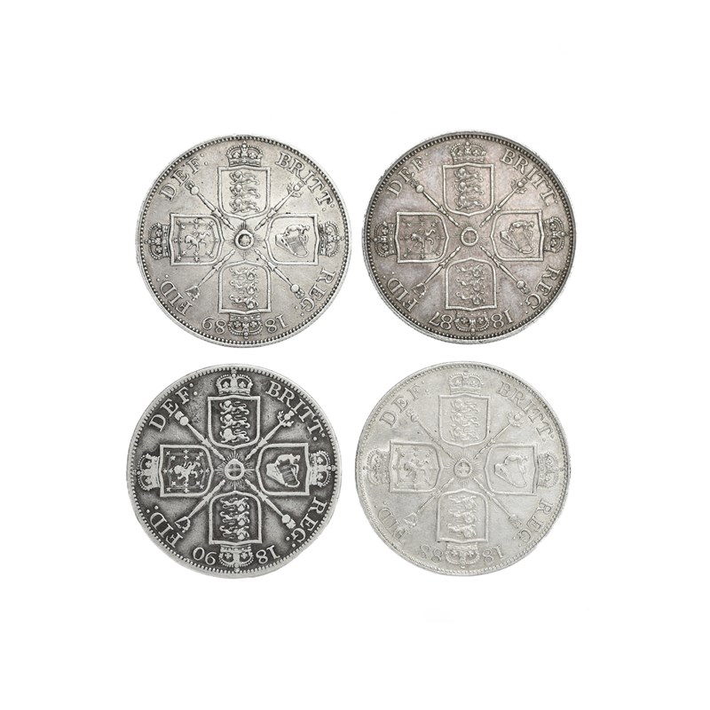 Victoria, silver double florins (4), 1887, Roman I in date (S 3922), light surface marks but otherwise extremely fine and with some lustre; 1888, 1889, 1890, Arabic 1 in date (S 3923), good very fine, very fine and fine. [4]