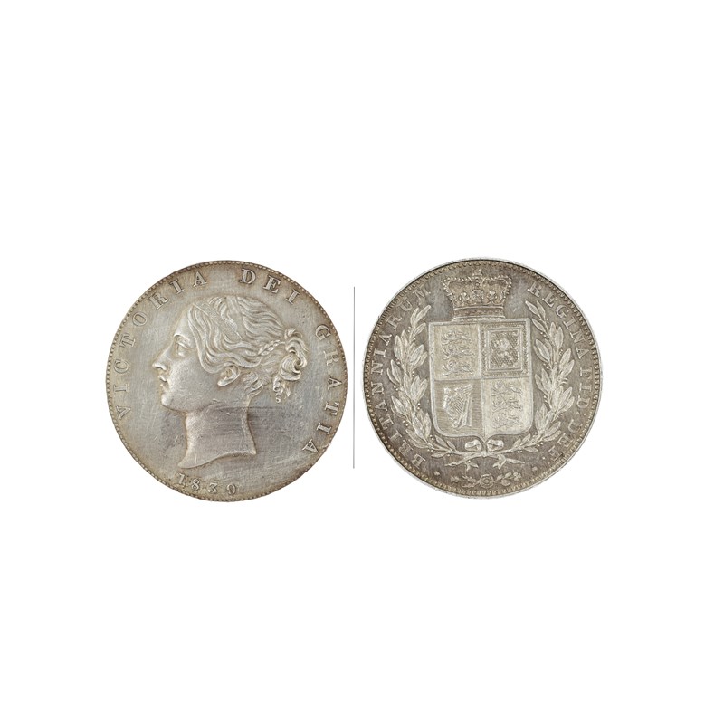 Victoria, silver halfcrown, 1839, young head, one ornate and one plain fillet binding hair, WW in
