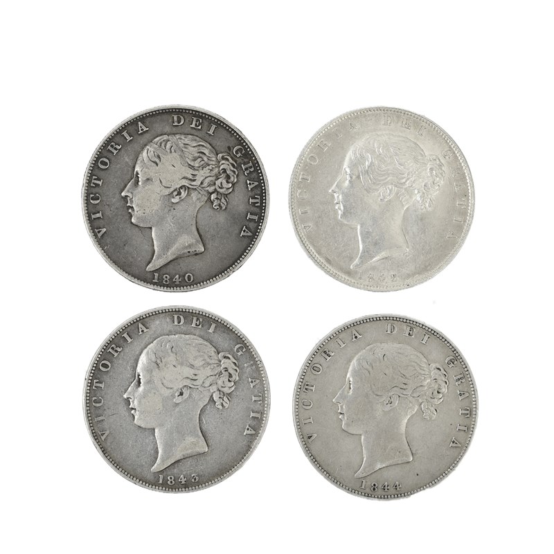 Victoria, silver half crowns (4), 1840, 1842, 1843, 1844, young head, two plain fillets in hair, no