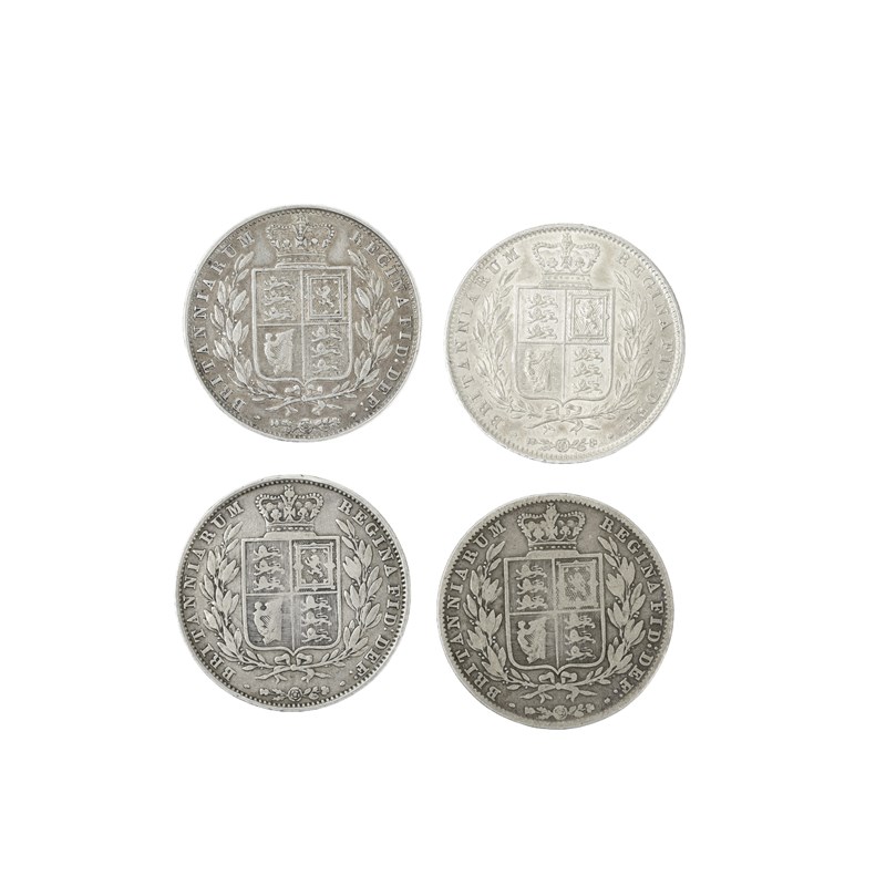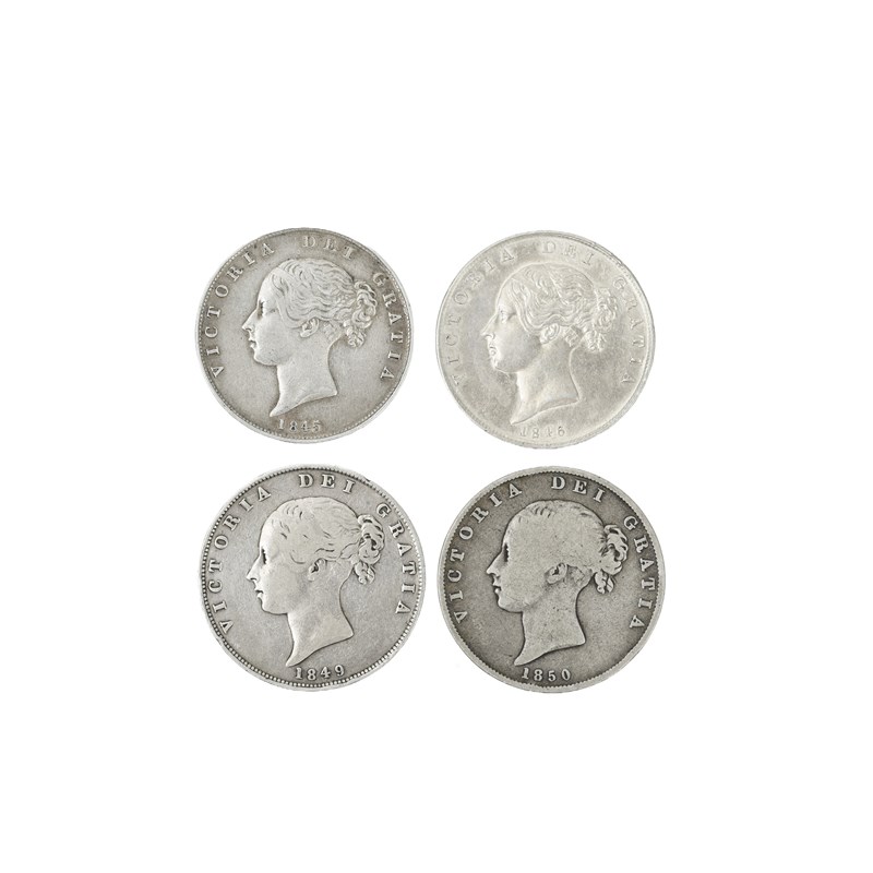 Victoria, silver half crowns (4), 1845 (5 over 3), 1846, 1849, 1850, young head, two plain fillets in hair, no initials on truncation (S 3888), good fine and scarce, nearly extremely fine, fine and fine. [4]
