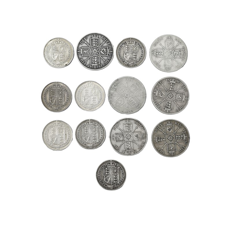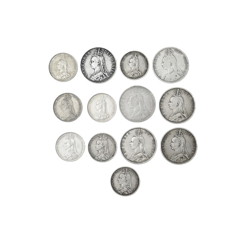 Victoria, a small quantity of silver coins, comprising florins (6), 1887-1892, Jubilee head (S 3925), fair to fine; shillings (3), 1887-1889, small Jubilee head (S 3926), very fine, the last better; shillings (4), 1889-1892, large Jubilee head (S 3927), the first nearly extremely fine, the others about very fine. [13]