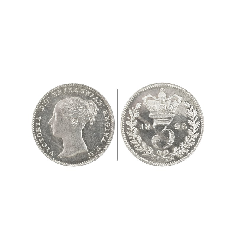 Victoria, silver threepence, 1846, first young head (S 3914), extremely fine or nearly so and rare.