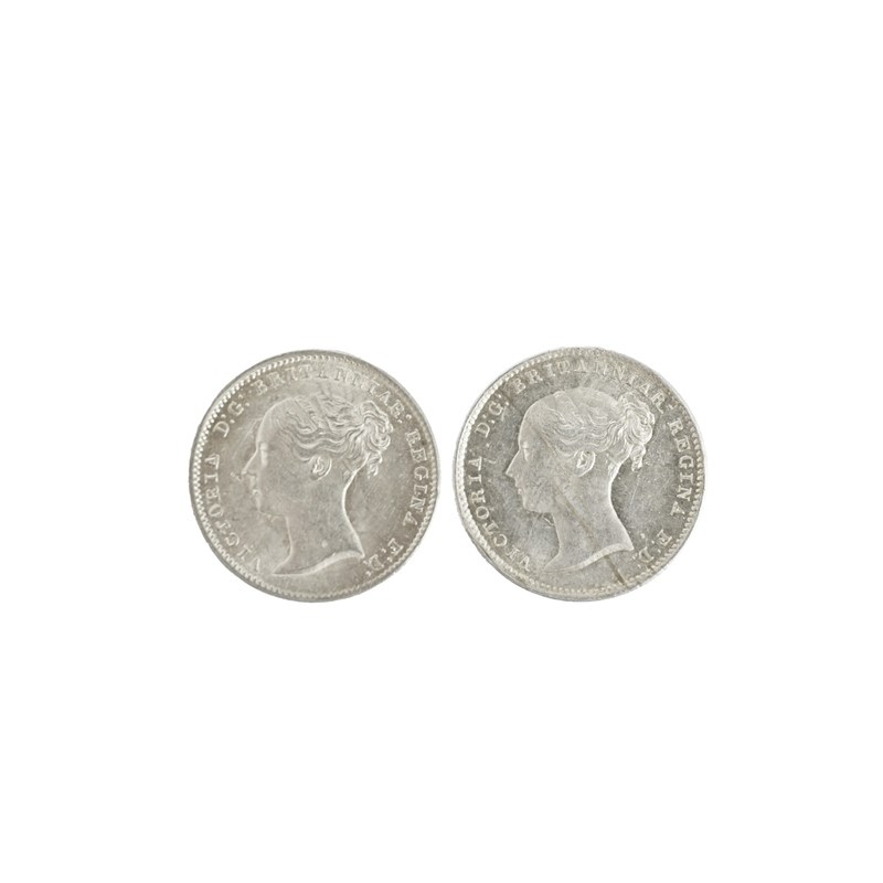 Victoria, silver threepence (2), 1854 and 1856, first young head (S 3914), the first with a dent in front of th enose, the other with light striations across the head, otherwise about extremely fine. [2]