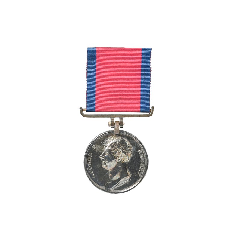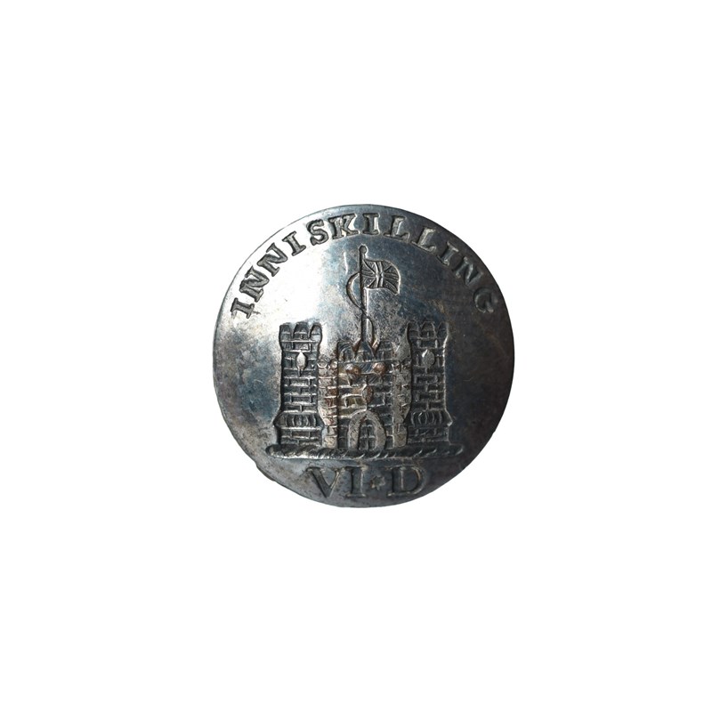 The Waterloo Medal 1815 to Captain Thomas Macky, 6th (Inniskilling) Dragoons, privately fitted steel straight bar suspension (CAPT. THOs. MACKY, 6th or INNISKILLING DRAG.), engraved correction to name ('Y' of 'MACKY'), edge bruised and with areas of striation, obverse a little rubbed, otherwise good very fine, reverse better, toned; together with a 6th Dragoons button and a button of the 95th Foot. [3]