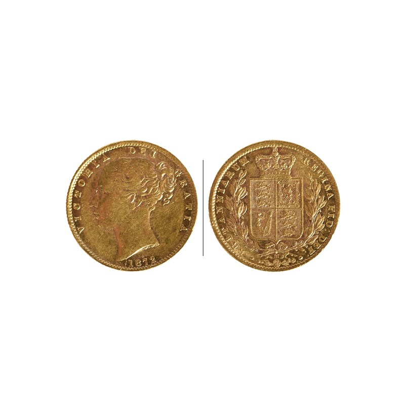 Victoria, gold sovereign, 1872, Melbourne mint, young head, rev crowned shield (S 3854), very fine.