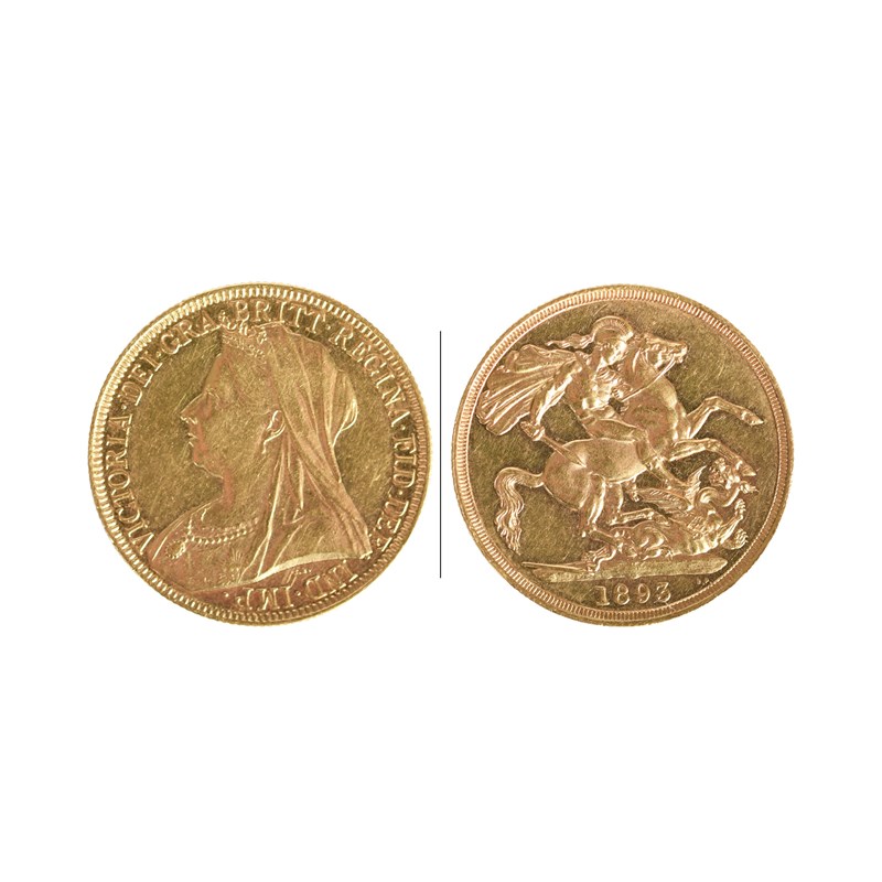 Victoria, gold two pounds, 1893, veiled bust (S 3873, F 395), nearly extremely fine.