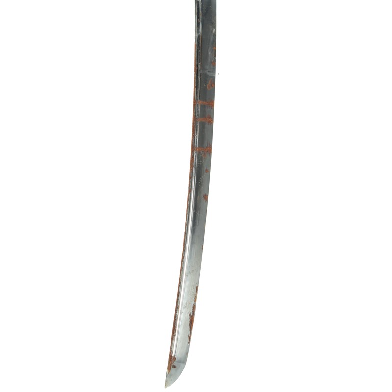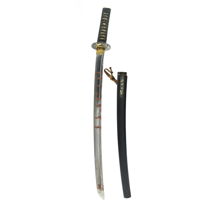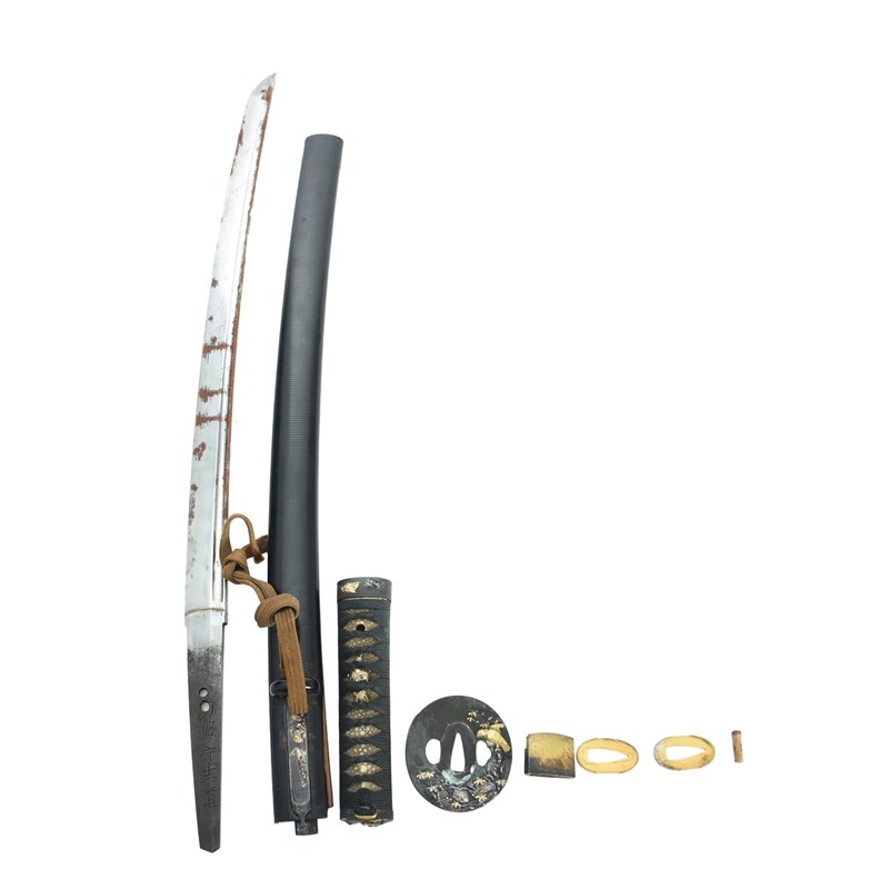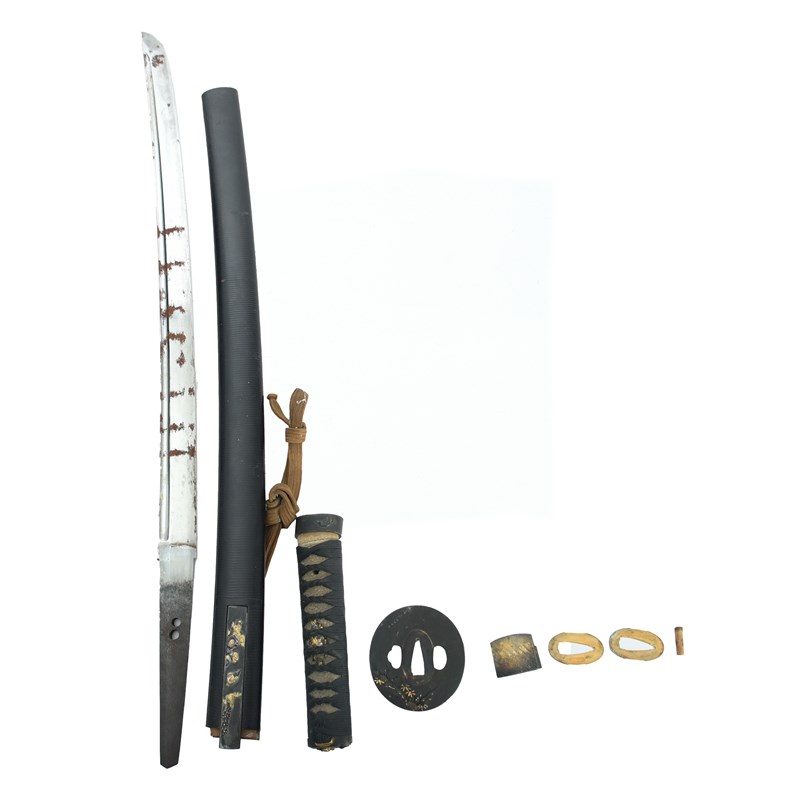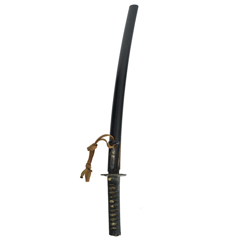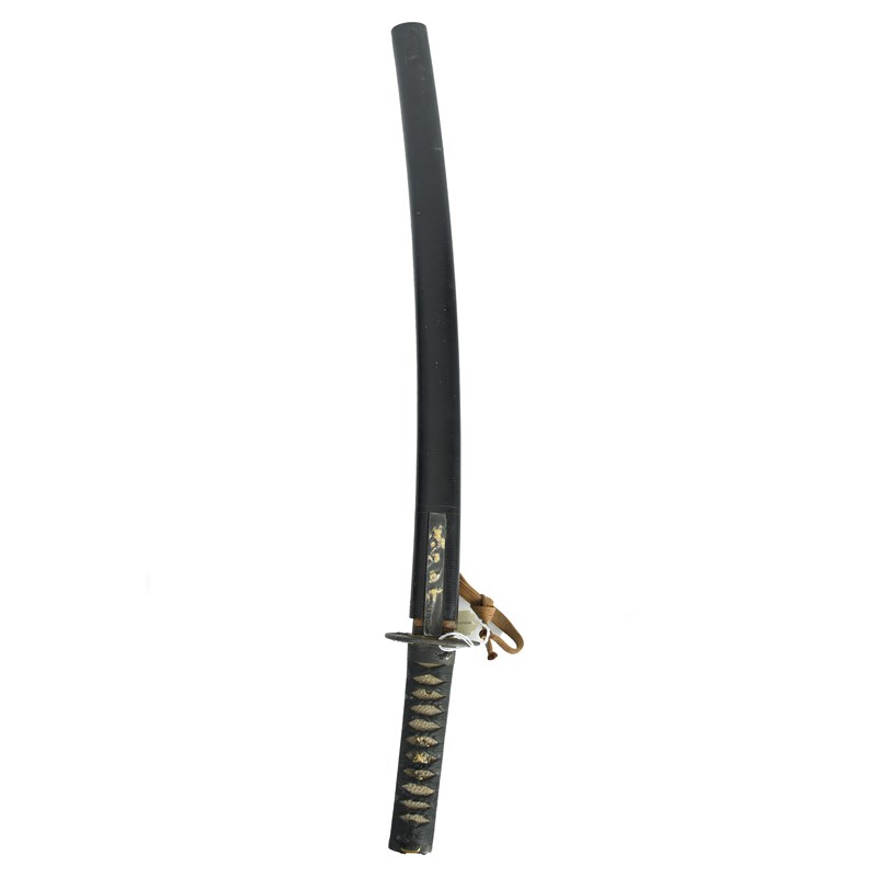 A Japanese sword (wakizashi), blade 21.5 in., hon-zukuri with hi, broad hamon based on suguha,