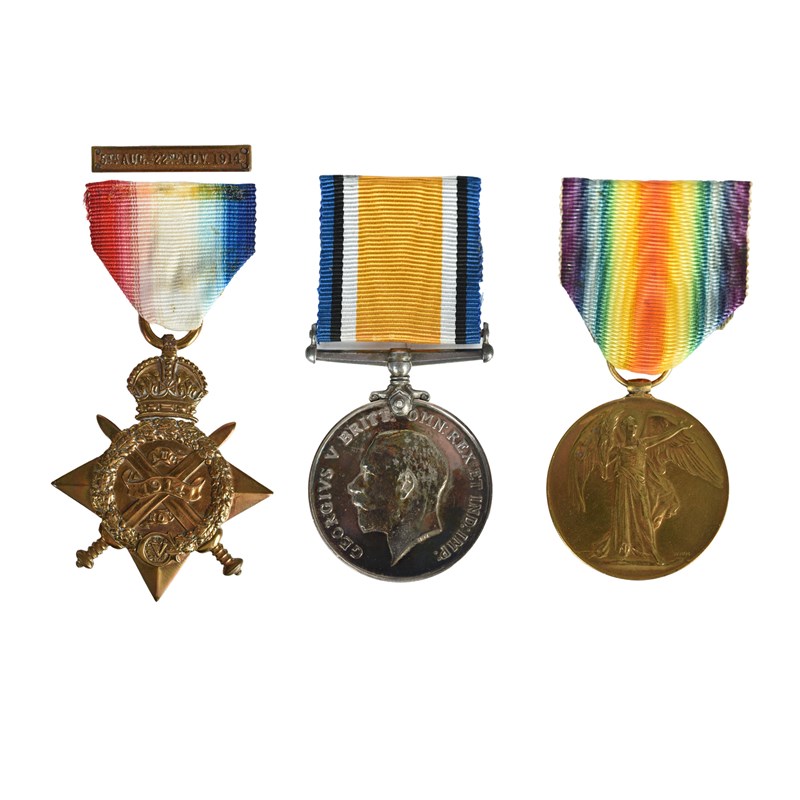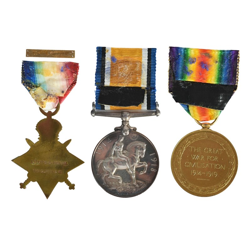 A Great War trio to First Battle of Ypres fatal casualty Lieutenant Gerald Sclater Ingram, The Queen's (Royal West Surrey) Regiment: 1914 Star, with copy clasp (LIEUT: G. S. INGRAM. THE QUEEN'S R.), extremely fine or nearly so; British War Medal 1914-20 and Victory Medal (LIEUT. G. S. INGRAM.), extremely fine. [3]