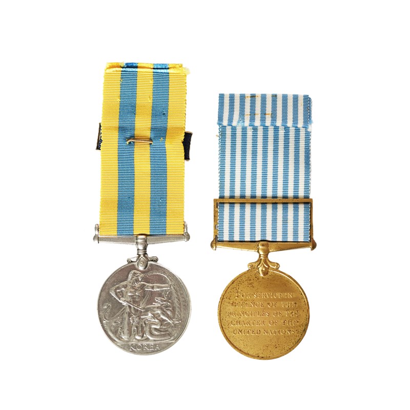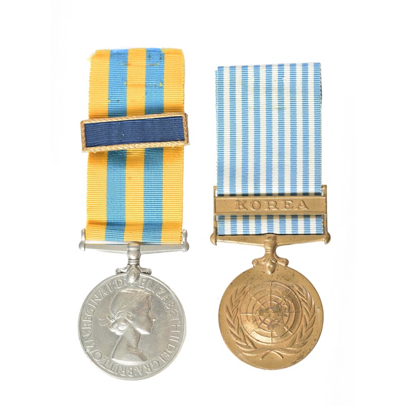 Two medals to Private L. S. Ford, Gloucester Regiment: Korea Medal 1951 (22415236 PTE. L. S. FORD. GLOSTERS.), good very fine; United Nations Korea Medal, unnamed as issued, good very fine, [2]; together with a U.S. Presidential Unit Citation Bar, watered blue silk in a gilt-metal frame.