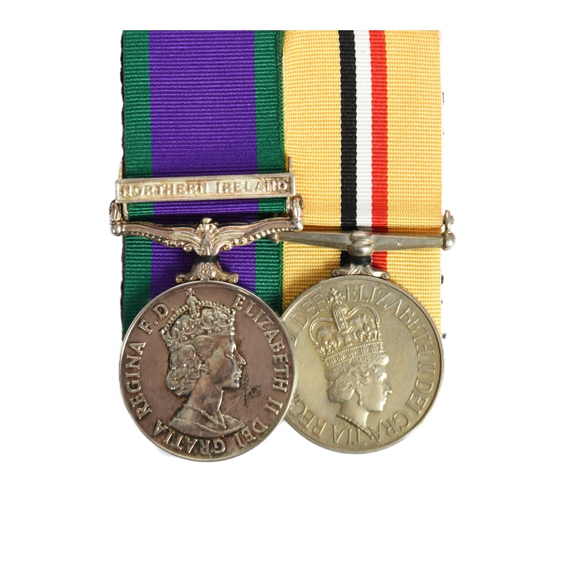Two medals to Private S. L. Barry, Princess of Wales Royal Regiment: Campaign Service Medal 1962-2007, clasp: Northern Ireland (25156580 PTE S L BARRY RWRR); Iraq Medal 2004, no clasp (25156580 PTE S L BARRY RWRR), mounted for wearing, good very fine or better, [2]; with the box for the first medal.