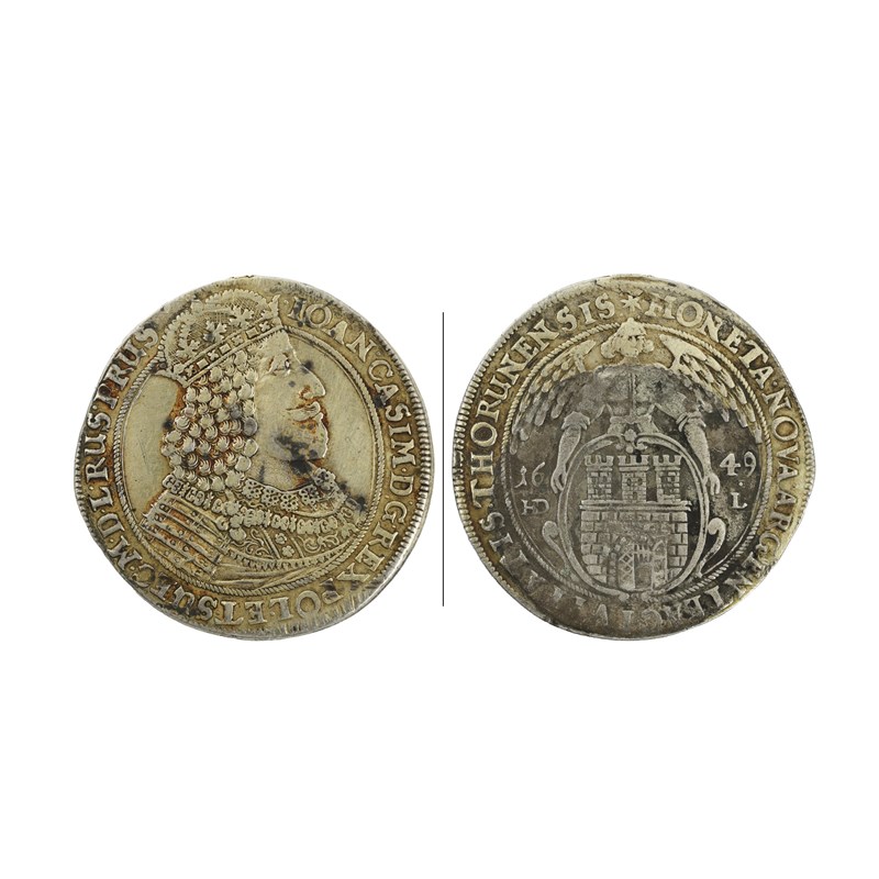 Poland - Thorn: John Casimir, silver thaler, 1649 HDL, crowned and armoured bust left, rev. angel holding oval city arms (KM 32, Dav. 4377), part gilded and rims with restoration suggesting mounting, otherwise near very fine and scarce.