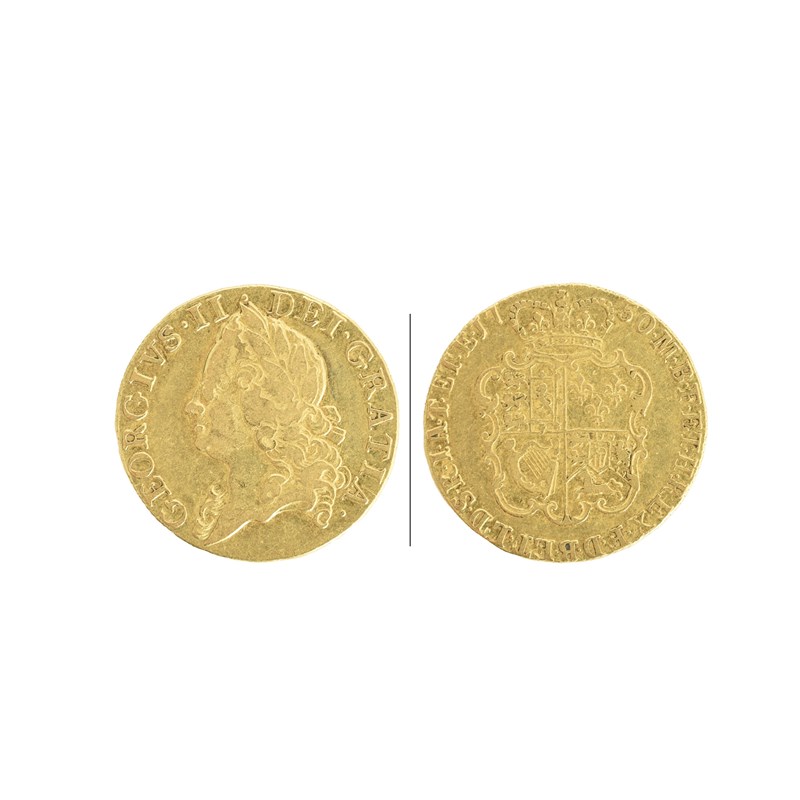 George II, gold guinea, 1750, old head, rev. shield of arms (S 3680), good fine.