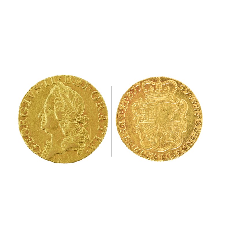 George II, gold half-guinea, 1759, old head, rev. shield of arms (S 3685), centre reverse a little rubbed, otherwise very fine or better.