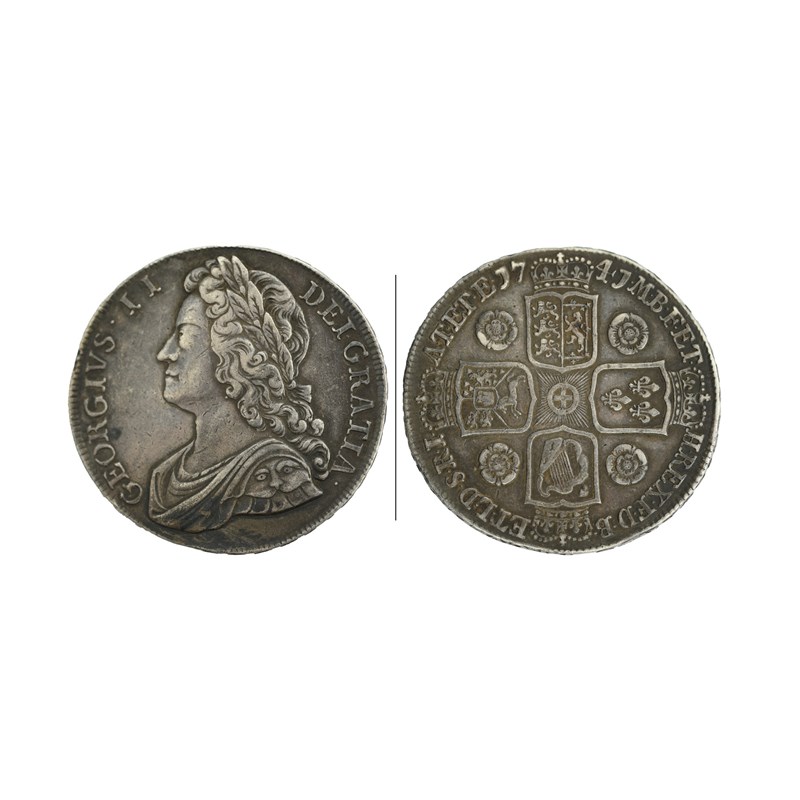 George II, silver crown, 1741, young bust, rev. roses in angles, edge DECIMO QVARTO (S 3687), good