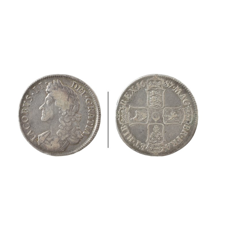 James II, silver crown, 1687, second bust (S 3407), good fine.