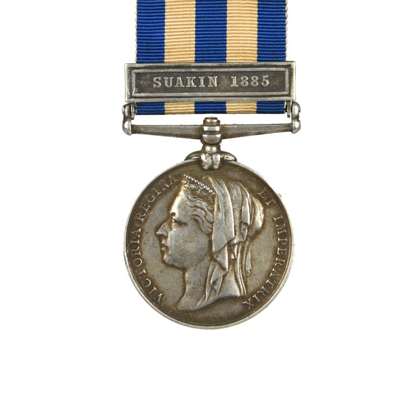 Three Egypt and Sudan Medals 1882-89: the first to Gunner J. Shaw, Royal Artillery, dated reverse, clasp: Tel-El-Kebir (32935, GUNR. J. SHAW, A/1. BDE. R.A), bruise to obverse rim at 8 o'clock, otherwise very fine or better; the next to Private William Ringer, 2nd Battalion Scots Guards, undated reverse, clasp: Suakin 1885 (5697. PTE. W. RINGER. 2/SCOTS. GDS.), very fine; the last to Private J. E. Bell, Medical Staff Corps, undated reverse, clasp: Suakin 1885 (5419. PTE. J. E. BELL. M.S. CORPS), very fine or better. [3]