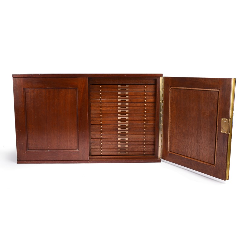 A mahogany coin collector's cabinet