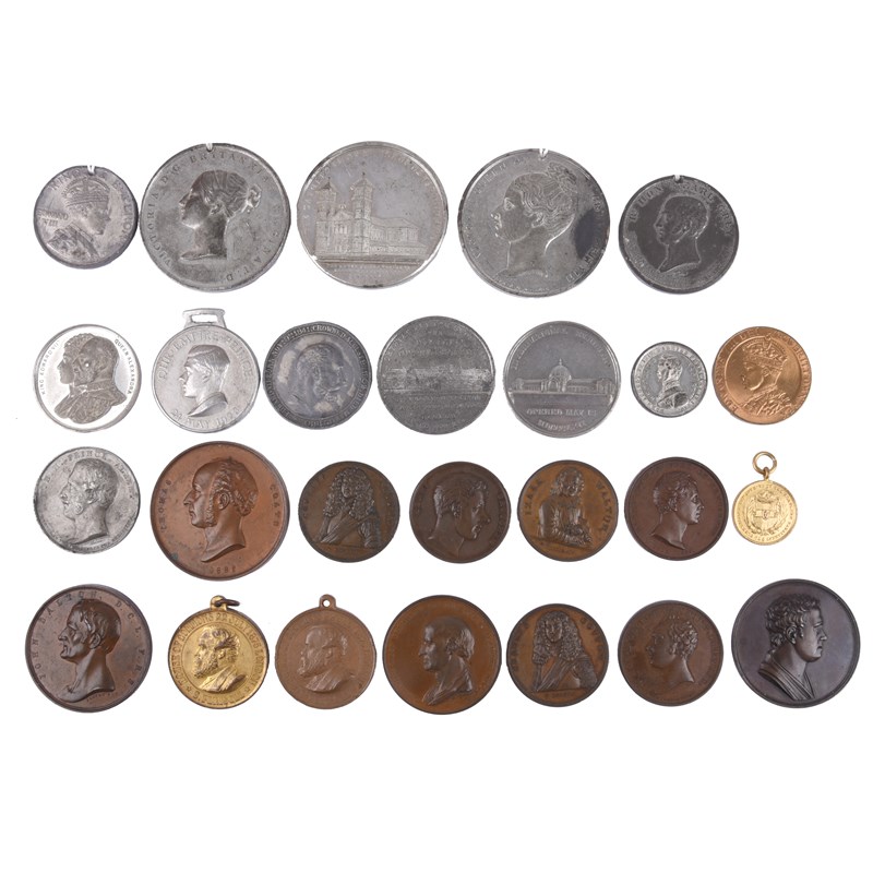 A quantity of base metal historical medals, mainly white metal, various subjects, grades from fair to near very fine. [qty]
