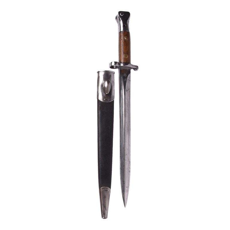 A pattern 1888 Mk II bayonet, by Enfield, steel mounted leather scabbard with corresponding number '306'.