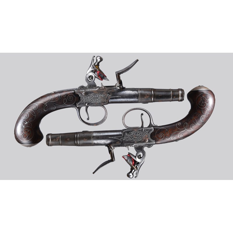 A pair of 18th century English 54 bore flintlock pistols