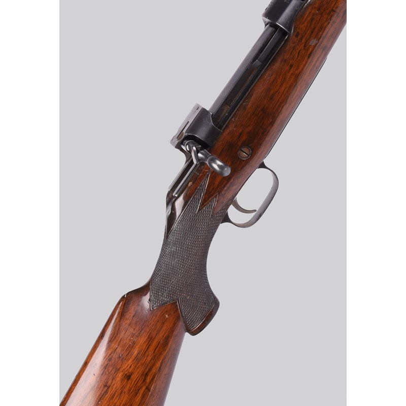A .280 Ross straight pull Model 10 sporting rifle, serial number 16260, barrel 28 in. with one fixed and one folding back sight (marked for 100 and 300 yards), chequered pistol grip half stock with 'schnabel' fore end, straight pull action with pierced bolt handle, steel butt plate. Section 1 - FAC or RFD required to purchase.