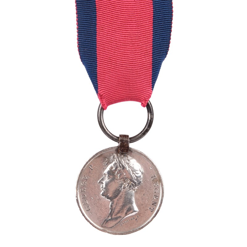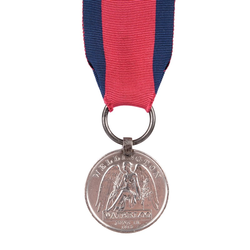 A Waterloo Medal to Private Patrick Rutledge, 1st Battalion 91st Regiment of Foot (PATT. RUTLEDGE. 1ST BATT. 91ST REG. FOOT.), much edge bruising and other contact marks, restored clip suspension with small split ring.