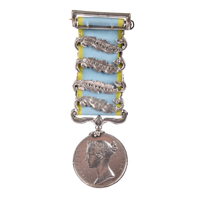 A Crimea Medal to Interpreter John Inwood, 4 clasps (JOHN. INWOOD* INTERPRETER* TO. THE. FORCES*), depot impressed naming, much edge bruising and other contact marks, worn, irregularly riveted clasps with break between Balaklava and Inkermann,