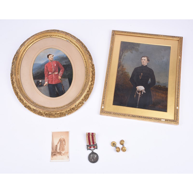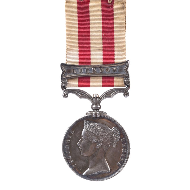 An Indian Mutiny Medal 1857 to Lieutenant Robert Fannin Stoney, 53rd (Shropshire) Regiment of Foot, clasp: Lucknow (LIEUT R.F. STONEY. 53RD REGT.), a little edge bruising and abrasion, nearly extremely fine and attractively toned; together with an overpainted uniformed portrait photograph of the recipient, wearing his medal ribbon; a letter written by him to his parents, from Lucknow, April 7th 1858; a uniformed portrait of his Brother Richard B. Stoney, Royal Artillery (died 1861), documents pertaining to Richard's training at Woolwich; and other items.