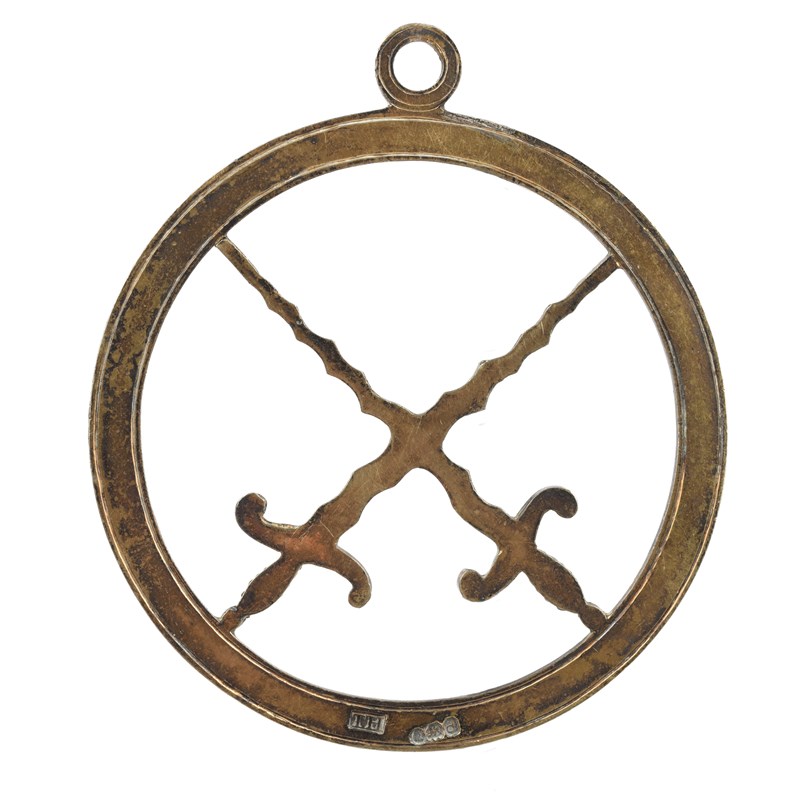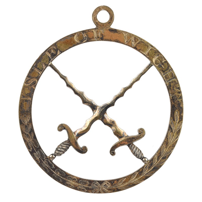Freemasonry: a rare Isle-of Wight Officer's silver-gilt collar jewel, openwork form 80mm, crossed daggers with flamboyant blades within a circle engraved 'ISLE OF WIGHT', Thomas Harper 1819(?), good very fine.