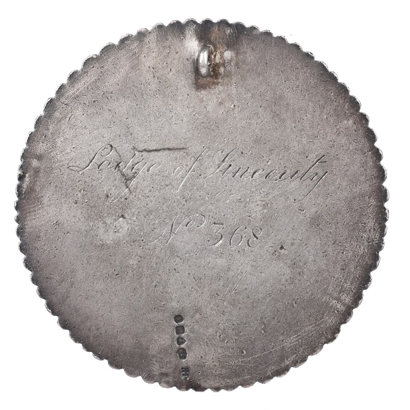 Freemasonry: a Victorian Officer's or Steward's silver Jewel for the Lodge of Sincerity No 368, circular form 69mm, applied compasses and cornucopia to a radially fluted ground, rev. engraved with lodge title in running script, London 1854, good very fine or better.