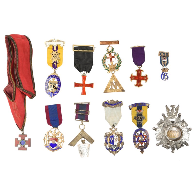 Freemasonry: a collection of various jewels, Victorian and later, in silver, silver-gilt, enamels and other materials, varying grades but largely good condition. [11]
