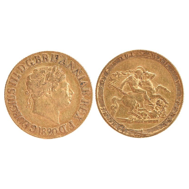 George III, gold sovereign, 1820, closed 2 in date (S 3785C), very fine.
