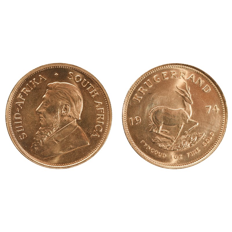 South Africa: gold krugerrand, 1974 (KM 73), extremely fine or nearly so.