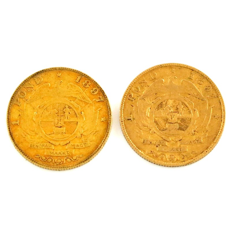 South Africa [ZAR], Paul Kruger, gold Ponds (2), 1897. Fine to very fine. (2)