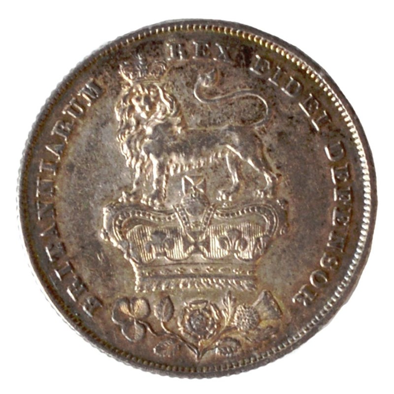 George IV, Silver Shilling, 1825, bare head bust, third reverse, Roman I in date (S 3812). Good very fine and extremely rare.