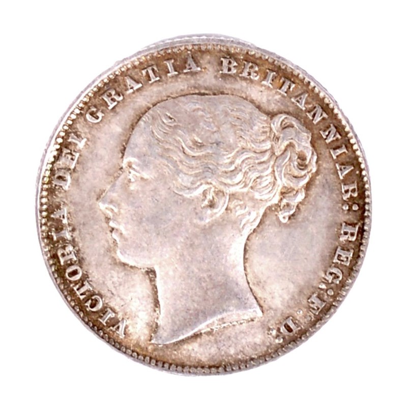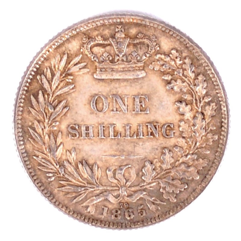Victoria, Silver Shilling, 1865, die 79 (S 3905). Lightly toned and light wear on high spots of hair, otherwise extremely fine.