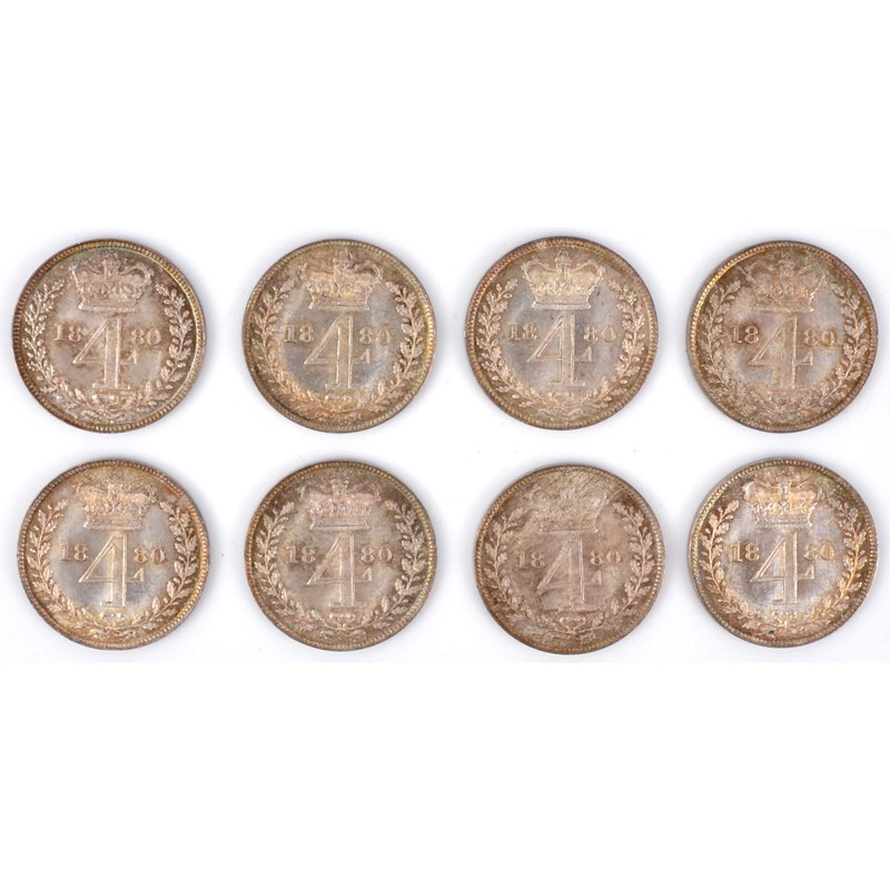 Victoria, Maundy Fourpences (8), 1880 (S 3917). Extremely fine or nearly so.
